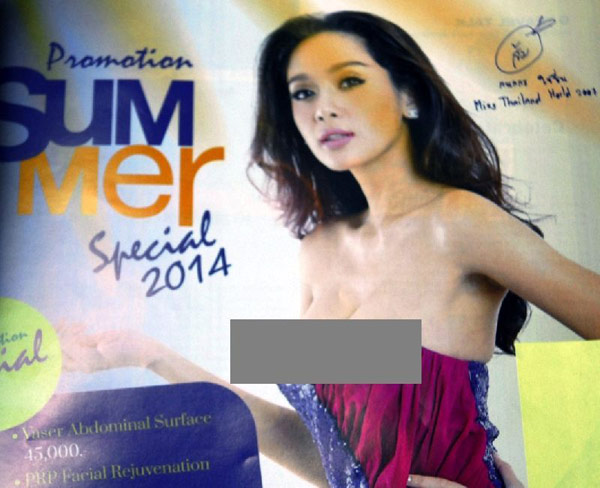 ส้ม กนกกร ใจชื่น อดีตมิสไทยแลนด์เวิลด์ ฟ้องคลินิกดัง ใช้รูปหวิวโชว์เนินอกโฆษณาในนิตยสารโดยไม่ได้รับอนุญาต ทำให้เสียภาพลักษณ์