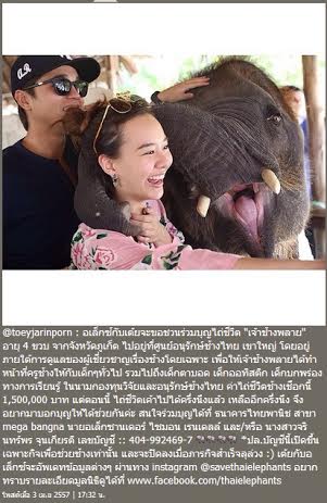สนใจร่วมบุญได้ที่ ธนาคารไทยพาณิชย์ สาขา mega bangna นายอเล็กซานเดอร์ ไซมอน เรนเดลล์ และ/หรือ นางสาวจรินทร์พร จุนเกียรติ เลขบัญชี :: 404-992469-7 *ปล.บัญชีนี้เปิดขึ้นเฉพาะกิจเพื่อช่วยช้างเท่านั้น และจะปิดลงเมื่อภารกิจสำเร็จลุล่วง :) เต้ยกับอเล็กซ์จะอัพเดทข้อมูลต่าง ๆ ผ่านทาง instagram @savethaielephants อยากทราบรายละเอียดมูลนิธิดูได้ที่ www.facebook.com/thaielephants