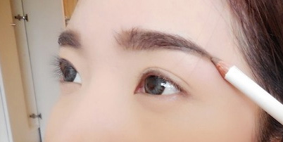 เริ่มจากเขียนคิ้วด้วยดินสอเขียนคิ้วสีน้ำตาลอ่อน