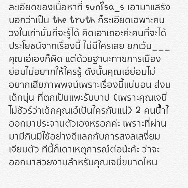 แต่เพียงไม่นาน ก็มีการตั้งอินสตาแกรมอีกชื่อว่า sunisan_sap ที่ออกมาแฉว่า อินสตาแกรม sunisan_s นั้น คือ อินสตาแกรมเดียวกันกับของเจนี่ เนื่องจากโลเกชั่นที่ของอินสตาแกรม ja_asavahame เป็นโลเกชั่นเดียวกันกับของอินสตาแกรม sunisan_s จึงทำให้มีคนมองว่า เจนี่อาจจะเป็นคนแฉเรื่องนี้ด้วยตัวเอง แต่เพราะอยากรักษาภาพของภรรยาสาวแสนดี จึงตั้งอินสตาแกรมอีกชื่อหนึ่งขึ้นมาเพื่อแฉนั่นเอง