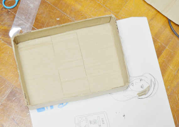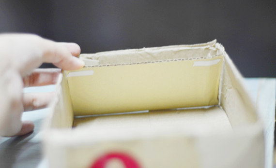 1. เอากล่องมาเสริมความแข็งแรงโดยเอากระดาษลัง ปูพื้นไปก่อน 1 ชั้น แต่กล่องพัสดุค่อนข้างแข็งแรงอยู่แล้ว เลยทำให้พื้นมันเท่ากันเฉย ๆ