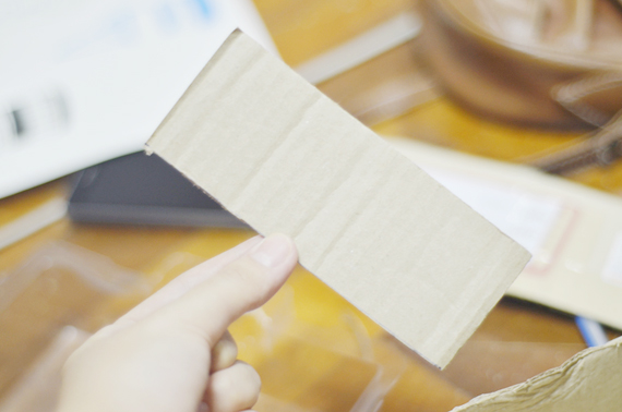 2. นำกระดาษแข็งเหลือใช้ มาตัดให้ขนาดเท่าก้นกล่อง 1 ชิ้น ด้านกว้าง 4 ชิ้น ด้านยาว 4 ชิ้น (ลืมถ่ายรูปตอนตัด T.T)