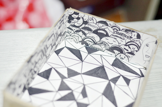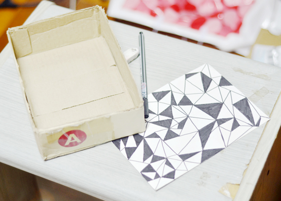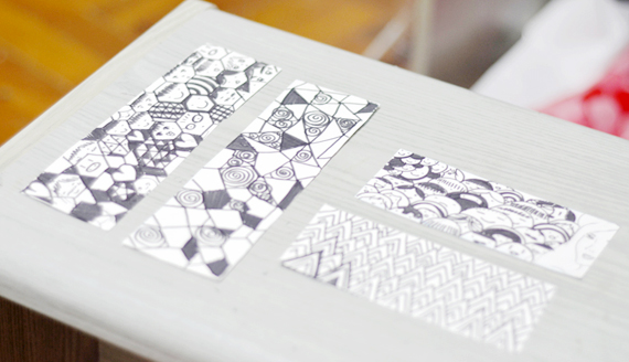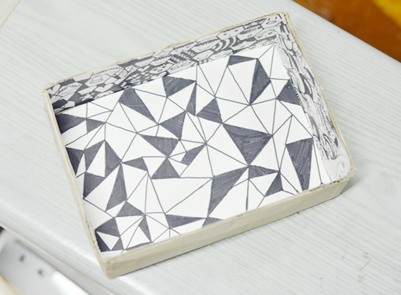 3. นำกระดาษที่ตัดแล้ว มาวาดรูปตกแต่งตามใจชอบ ตอนนี้ลาย geometric กำลังมาแรง ฮ่า ๆ แต่ถ้าใครเป็นพวกวิถีเซน ก็ปล่อยไว้ว่าง ๆ หรือจะปริ้นรูป ลายต่าง ๆ ใส่ A4 แล้วมาแปะบนกระดาษแข็งอีกที อันนี้ตามสะดวกเลยนะคะ