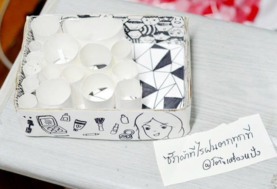 8. นำมาแปะบนกล่องกระดาษจะได้แบบนี้ ทำกระดาษม้วนเพิ่มเติม ขนาดเล็กใหญ่ตามใจชอบเลยนะคะเรียบร้อยแล้วค่ะ หมดปัญหาขวดล้มแบบโดมิโน เพราะทำล้มบ่อยมาก เวลาแต่งหน้ารีบ ๆ นี่ปวดหัวไปหมด ถ้าสาวคนไหนมีลิปสติกชนิดถมที่ได้ กล่องกระดาษแบบนี้สะดวกมากค่ะ ลองประยุกต์ทำหลาย ๆ แบบ จะเป็นช่องข้างใน เป็นตารางแทนกระดาษม้วนก็ได้ค่ะ ไว้คราวหน้าถ้ามีของ DIY แบบไหนอีก จะเอามาแบ่งปันกันอีกนะคะ พันทิปจะได้เป็น 1000 TIPS สมชื่อ