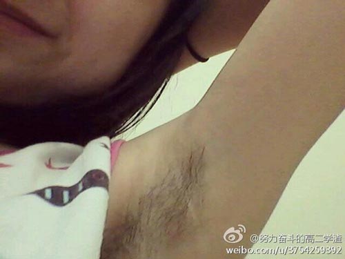 โดยเหล่าผู้ใช้งานในเว็บไซต์ เว่ยป๋อ ได้รวมตัวกันส่งภาพในหัวข้อ 女生腋毛不拔大赛 ที่แปลว่า หญิงที่ไม่ถอนขนรักแร้ โดยที่มีสาว ๆ หลายคนถ่ายภาพชูแขนอวดรักแร้แบบไม่โกนขน ส่งภาพเข้าร่วมสนุกกันเป็นจำนวนมาก จนทำให้มีคนสงสัยว่า การโชว์ขนรักแร้ยาวเฟื้อยแบบนี้ มันน่าดูตรงไหน
